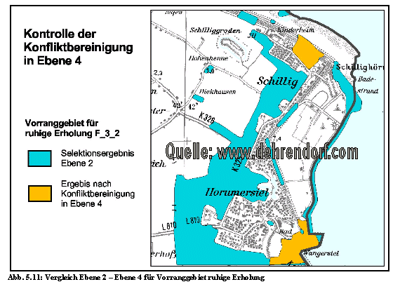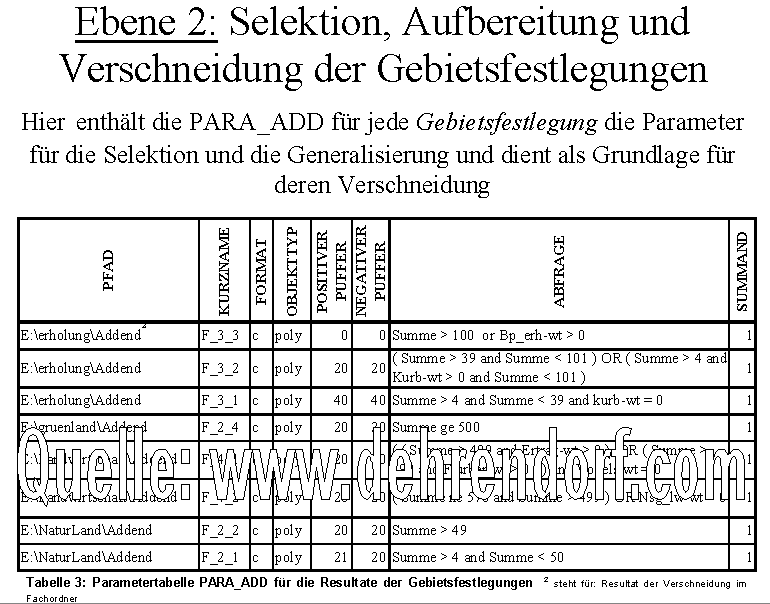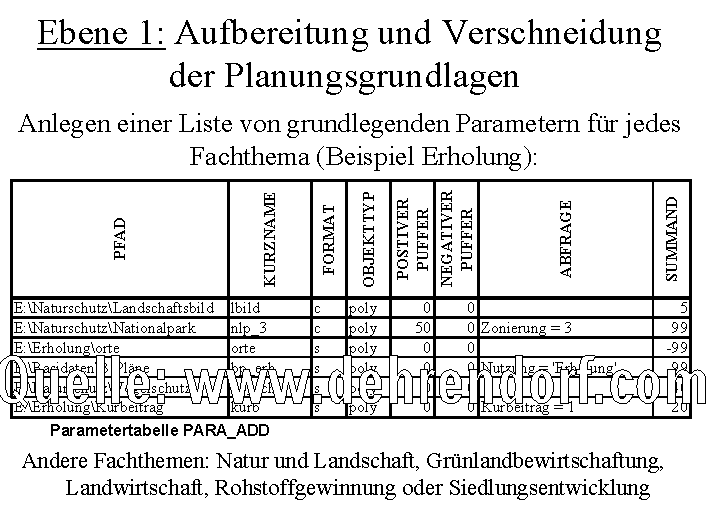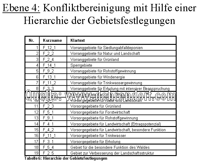 der Planungsgrundlagen (Ebene 1 im Ablaufplan) bis zur Entflechtung von konkurrierenden Nutzungsansprüchen (Ebene 4) anhand von Parametern,